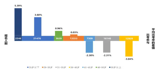 从参考考生学历情况看,专科学历考生参考意愿最高,本科以上学历考生随着学历等级的提高,参考率呈下降趋势。
